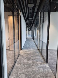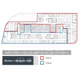 Описание помещения: Отдельный офисный блок рассчитан на 135-140 рабочих мест. Включает в себя 3-4 переговорных комнаты, 7 кабинетов, остальное open space.