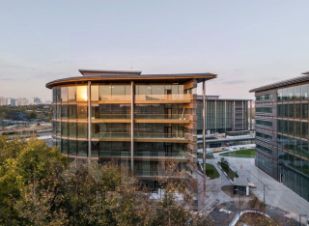 Бизнес-парк состоит из шести офисных зданий с фасадами из натурального базальта и металла, анодированного под бронзу. Архитектурный комплекс органично вписан в окружающий природный ландшафт, подчеркивая гармонию современного дизайна и естественной среды.