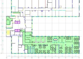 Описание помещения: Офисное помещение на 152 рабочих места. Расположено на двух этажах.