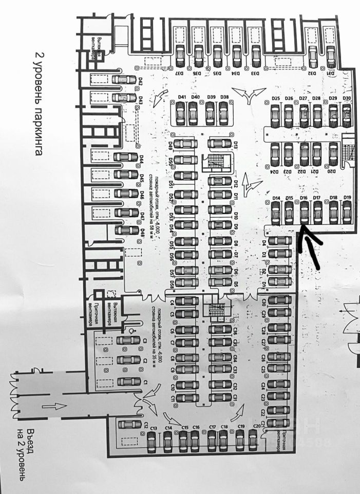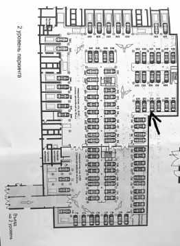 Машиноместо 16м2 находится на двухуровневой парковке, на нижнем этаже (-1).