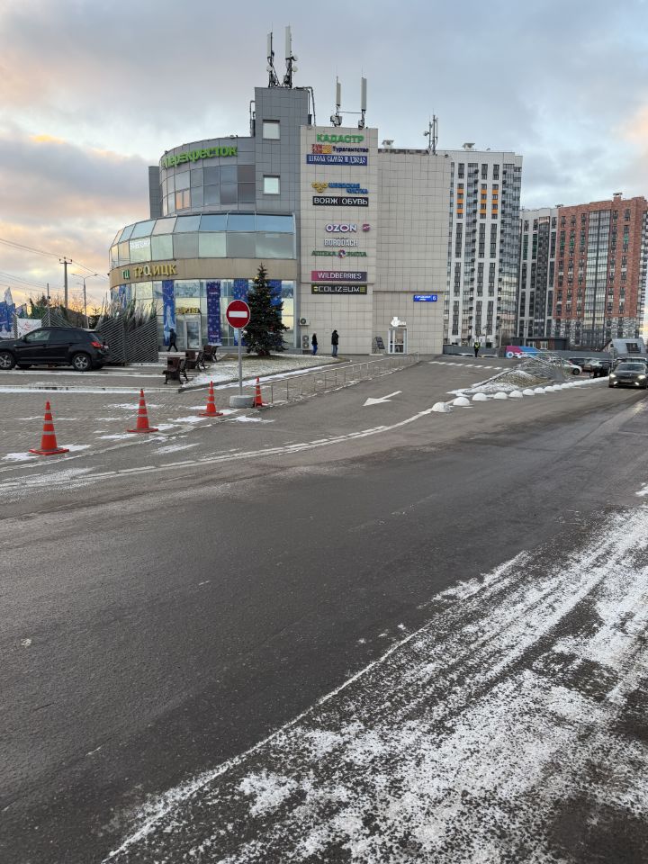 Возле ТЦ бесплатная парковка для легковых и грузовых автомобилей.