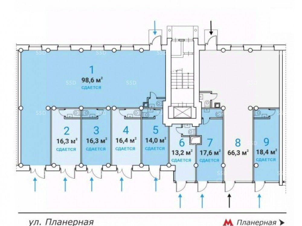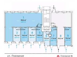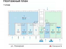 Предлагается в аренду помещение свободного назначения по адресу: г. Москва, СЗАО, Планерная улица 12к1. Помещение расположено в 70-ти метрах от станции метро Планерная. Прямая видимость от метро. Сверх-интенсивный пешеходный трафик на выходе из метро - вдоль фасада здания. Район с высокой плотностью застройки.