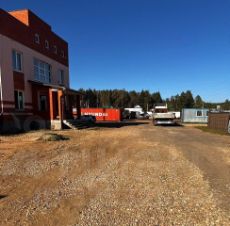 Удобный подъезд для грузовых машин, манёвровые зоны, просторная парковка.