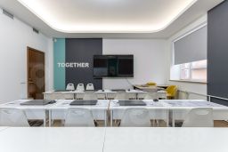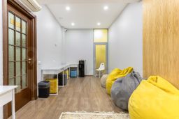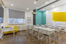 Помещение полностью меблировано и оснащено техникой: рабочие столы, шкафы, стулья, ноутбуки, телевизоры, кондиционеры. Возможна аренда как с полным текущим оснащением, так и без мебели — под задачи арендатора.
