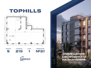 Сдается в долгосрочную аренду шикарное готовое торговое помещение площадью 219 кв.м. в квартале TopHills. Расположено на 1 этаже корпуса 5, имеет 2 полноценных входа (один вход с ул. Ремизова, второй - с внутренней территории), место под рекламную вывеску. Помещение без отделки с высотой потолка 5,1 метра. Предусмотрена электрическая мощность 65,5 кВт.