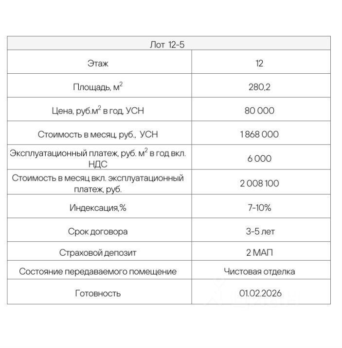 Эксплуaтациoнный плaтeж, руб. м2 в год вкл. HДС: 6 000