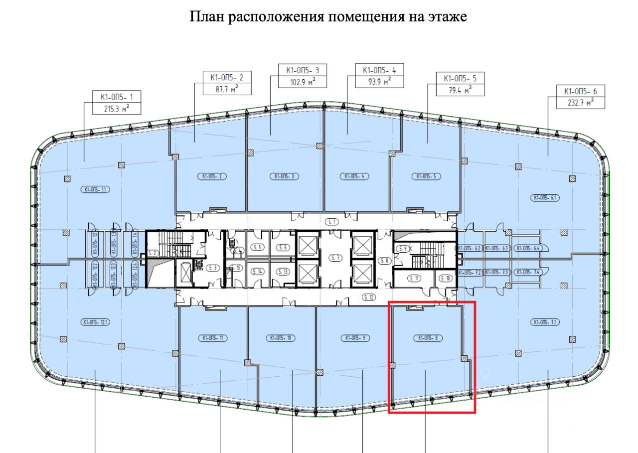 Предлагаю в аренду офисное помещение площадью 93,7 м², расположенное на 5 этаже бизнес-комплекса класса A. Панорамные окна с видом на парк, свободная планировка, shell & core — готово к реализации индивидуального проекта под арендатора.