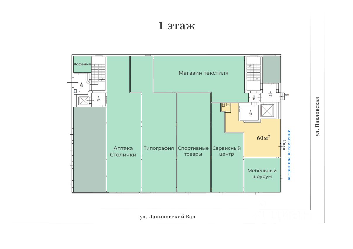 Торговое помещение 60 м² на 1 линии ул. Павловская
