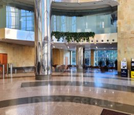 Подземная парковка (730 машин), столовая, кафе и ресторан, продуктовый магазин, фитнес-клуб, 13 пассажирских лифтов.
