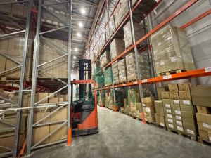 Ровный бетонный пол с антипылевым покрытием. Допустимая нагрузка на пол 8 т/м2