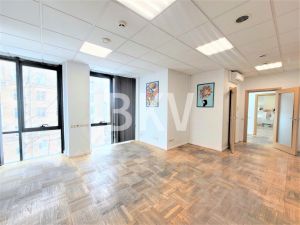 Офис расположен на 5 этаже. Планировка смешанная: коридор-open space с окнами (можно использовать для размещения сотрудников) кабинет руководителя с большим окнами в пол, кабинет для административного отдела. Можно сделать мини-кухню.