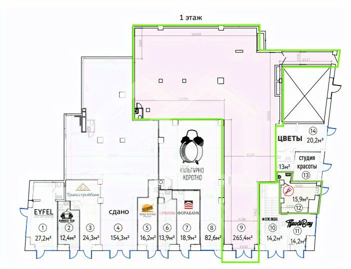 884945-s . Предлагаем помещение свободного назначения, площадью 15.9 кв. м, расположенное на первом этаже 6-этажного административного здания.