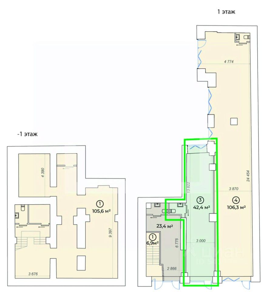 1010130-s . Предлагаем торговое помещение формата Street Retail, площадью 42,4 кв. м., расположенное на 1 этаже 4-этажного административного здания. Блок 3.