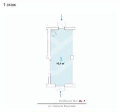 1084664 . Предлагаем торговое помещение формата Street Retail, площадью 43,6 кв. м., расположенное на первом этаже жилого дома.