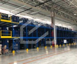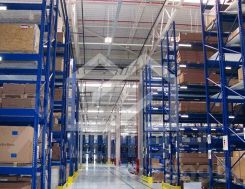 Склад полностью оборудован стеллажным оборудованием: зона хранения и мезонин.