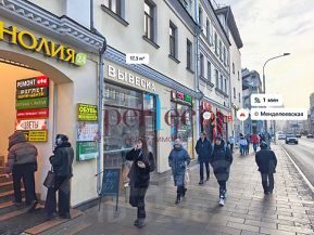 Объект расположен на первом этаже, на первой линии. В шаговой доступности от ст.метро "Менделеевская" и "Новослободская". Интенсивные автомобильный и пешеходный потоки.