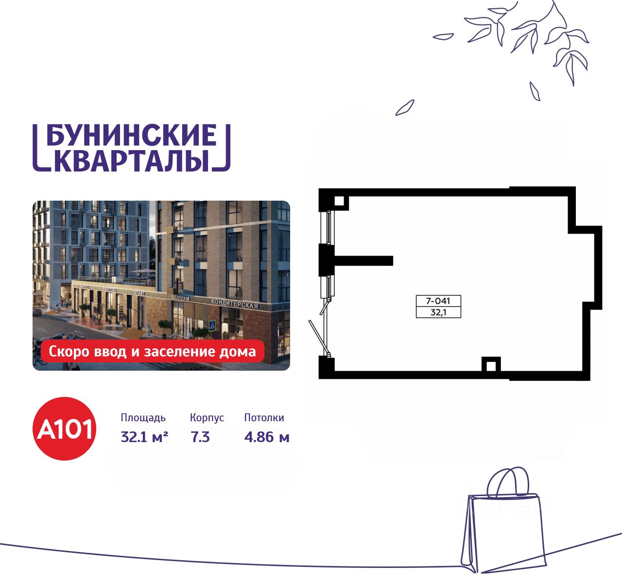 Сдается помещение площадью 32.10. на 1-м этаже ЖК "Бунинские кварталы".