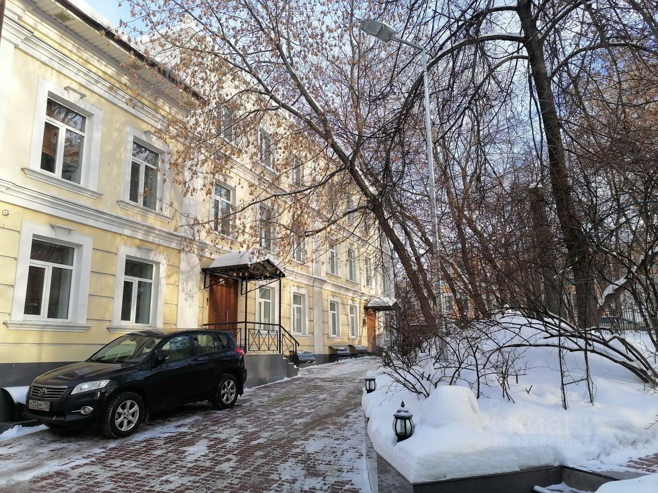 Описание помещения: Офисное здание имеет 3 этажа и цокольный этаж с окнами.
