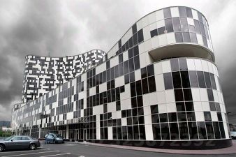 На территории располагаются: столовая и рестораны, магазины, представительства банков, а также конференц-зал.