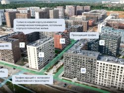 Корпус 23 расположен на центральном перекрестке, рядом с остановкой общественного транспорта. Все квартиры в ЖК с отделкой. ЖК строят в 24 км к юго-западу от МКАД и в 4 км от аэропорта. Первые корпуса сдали в марте 2023 года, а полностью проект будет завершён к 2031-му.Помещение находится на 1й линии, пешеходная зона/основная пешеходная тропа, на въезде в ЖК. Расположено по пути следования жителей на самом трафиковом коридоре ЖК. Мало коммерческих помещений — в данном квартале из 6 многоквартирных