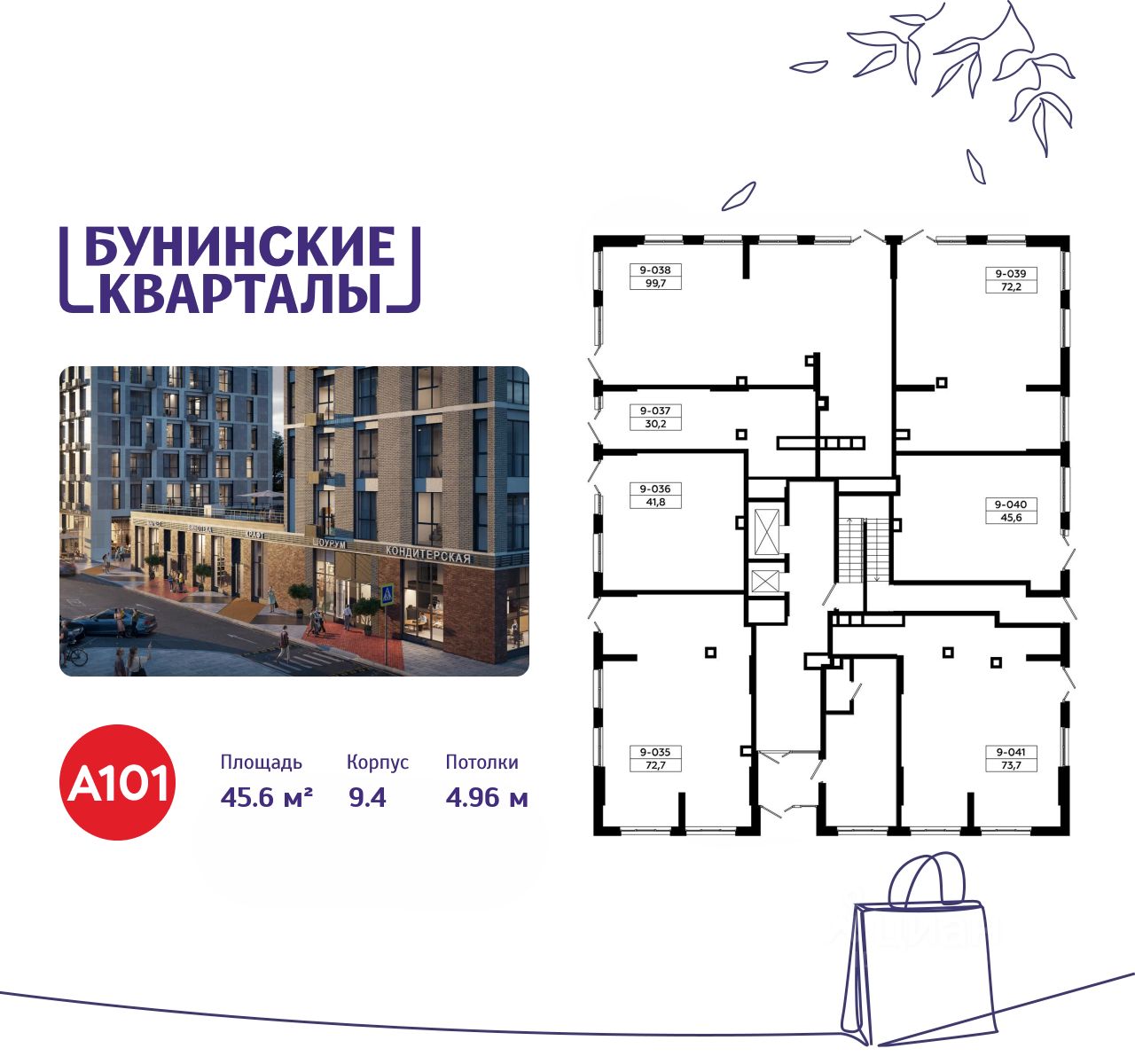 Сдается помещение площадью 45.60. на 1-м этаже ЖК "Бунинские кварталы".