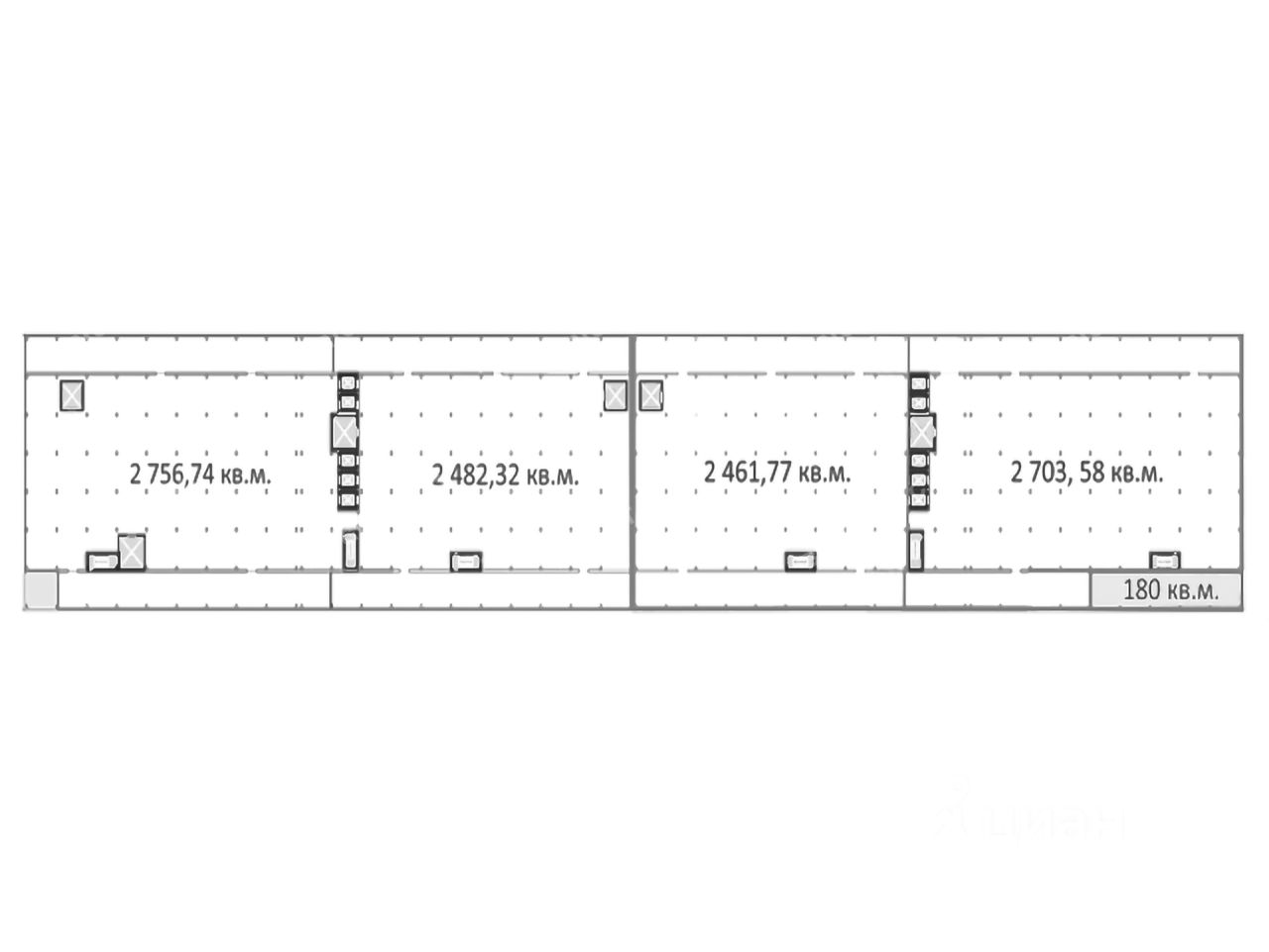- Высота потолков: 4.3 м, 8 м;