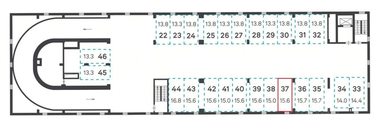Просторное машино место 37 площадью 15.6 м., расположено на 2-м уровне закрытого паркинга и способно разместить легковой автомобиль любых габаритов.