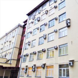Планировка - кабинетная. Центральное кондиционирование. Пожарная сигнализация. Интернет, телефония. Охрана. Наземная парковка.