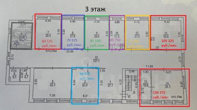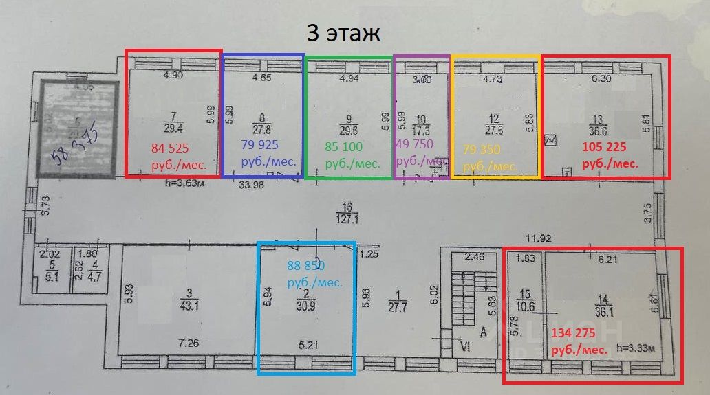 Один кабинет с окнами.