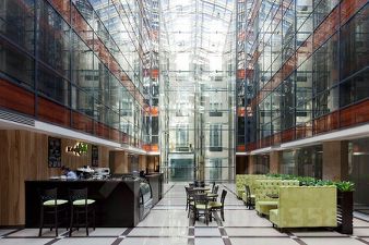 С мебелью. Приточно-вытяжная вентиляция. Центральное кондиционирование. Пожарная сигнализация. Интернет, телефония. Охрана. Видеонаблюдение. Система контроля доступа. Лифты: "LG-Sigma". Наземная парковка.