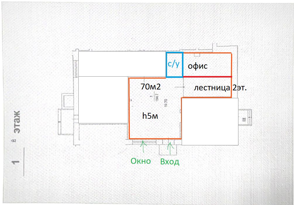 С/у, вода (возможность установить душевую кабину), электричество, вентиляция, окно, отдельное помещение для офиса.