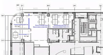 Организационная планировка: open-space, отдельные кабинеты, переговорные, гардеробные, кухонные зоны и собственные санузлы.