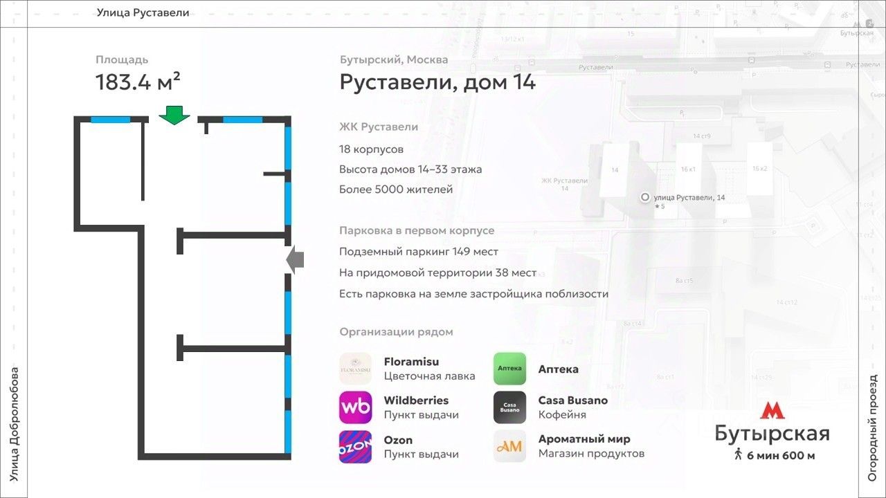 300 метров от метро Бутырская.