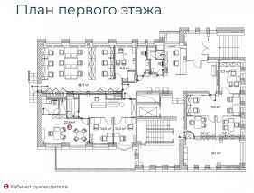 Описание помещения: Особняк оснащен всеми современными коммуникациями, помещения укомплектованы мебелью, изготовленной по индивидуальному заказу. Имеется зона ресепшн, рабочая зона open space, отдельные кабинеты, переговорная комната. Выполнен современный дизайнерский ремонт.
