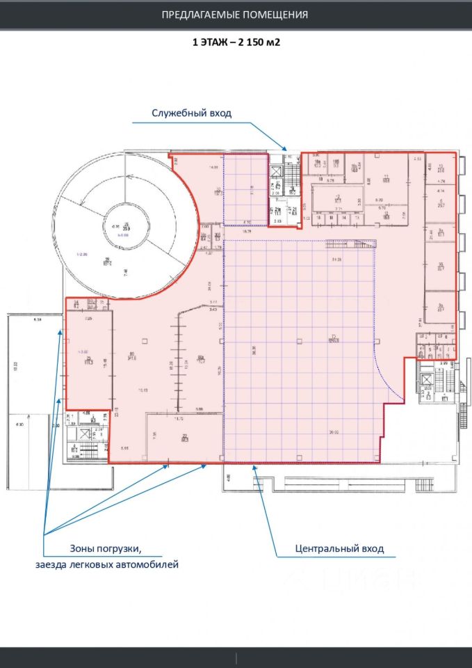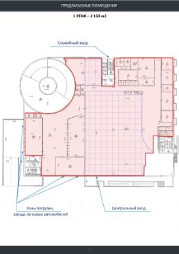 Также есть площади на других этажах с заездом по круговому пандусу.