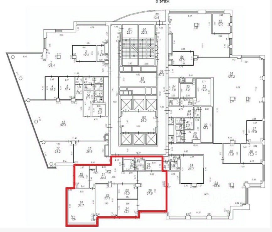 Предлагаем к аренде офис 194 м² на 8 этаже.