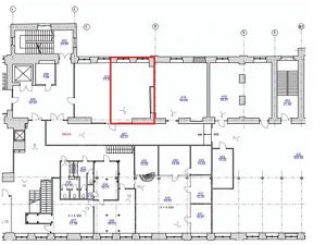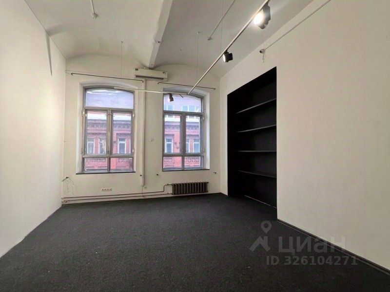 Площадь 40 кв. м, расположен на 5 этаже. Помещение с высокими потолками и большими окнами, хорошее естественное освещение. В здании предусмотрен лифт. На территории парковка.