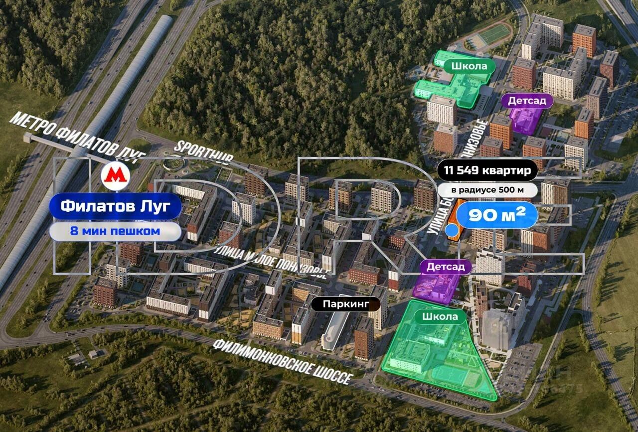 Жилой комплекс расположен в 3 км. от МКАД по Киевскому шоссе — между станциями метро Саларьево и Филатов Луг.