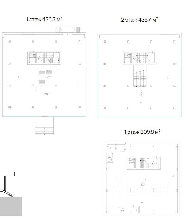 -1 этаж: 309,8 м² (высота 3,06 м) — идеально под склад, технические помещения или wellness-зону.
