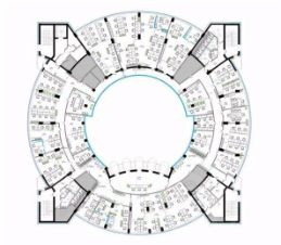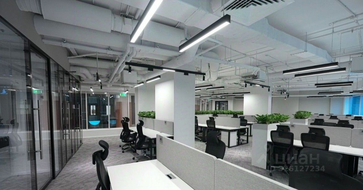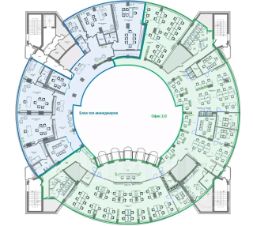 Рассчитано на 400 рабочих мест. Выполнена качественная отделка. Отдельная VIP - зона, кабинеты руководителя с зоной отдыха, переговорные комнаты, зона open-space для сотрудников, сан. узлы.