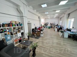 Высокие потолки, большие окна, грузовой лифт приходит закрытый тамбур рядом с помещением.
