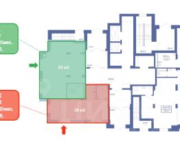 Общая площадь: 89 м2. Два отдельных входа - возможно деление на 36 и 53 м2.