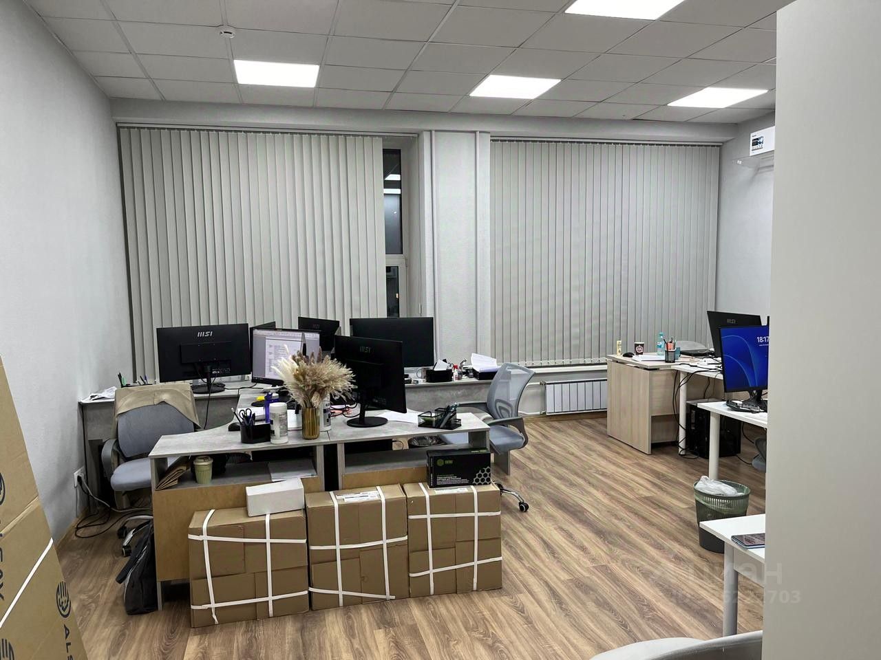 Офисы представляют собой светлые помещения с панорамными окнами, ламинатом на полу, окрашенными белыми стенами и потолками Армстронг, все офисы оснащены кондиционерами.