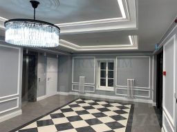 С мебелью. Приточно-вытяжная вентиляция. Центральное кондиционирование. Пожарная сигнализация. Интернет, телефония. Охрана. Видеонаблюдение. Система контроля доступа. Лифты: 3 лифта Thyssenkrupp. Наземная парковка.