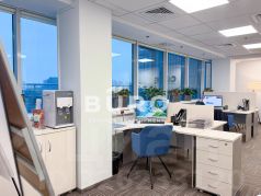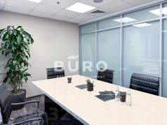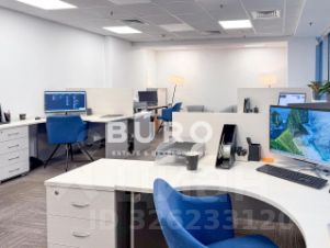 Планировка включает в себя просторный кабинет (23,6 м2), комфортную переговорную комнату (14,7 м2) и опенспейс (51,2 м2). В офисе выполнена современная отделка под ключ. Частично с мебелью.