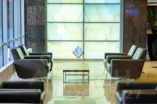 Просторное лобби на 1-м этаже Бизнес центра, для комфортного пребывания гостей и резидентов.