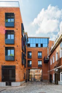 Отдельно стоящее здание на территории делового лофт-квартала Товарищество Рябовской Мануфактуры. Пространство занимает 55 тыс. кв. метров в одноименном районе Москвы на пересечении Большого Староданиловского и Холодильного переулков в центре города.