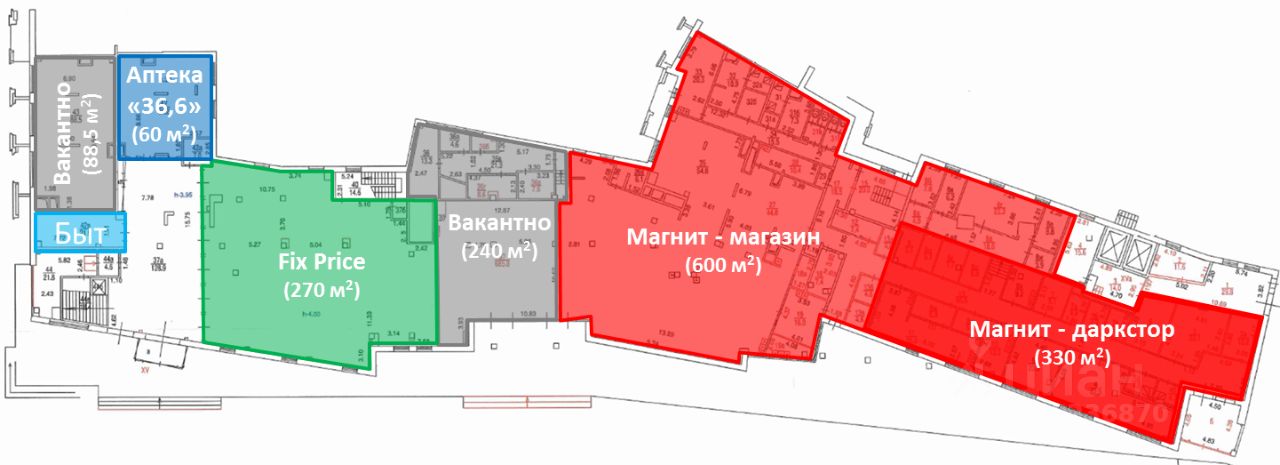 Помещение около главного центрального входа. Соседи: Аптека 36,6 и FixPrice.