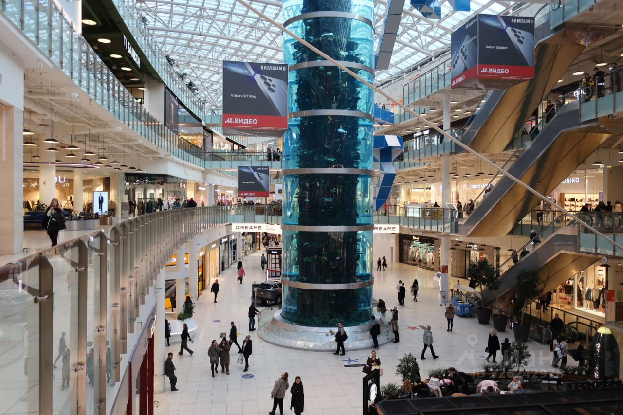 На четырех этажах комплекса расположены более 400 магазинов, среди которых международные марки (MAAG, Mango, New Yorker, Стокманн, Re, Samsung), успешные российские бренды (Lady & Gentleman, Детский мир, Спортмастер), марки премиум-сегмента (12Storeez, Max&Co, Marella, Pinko, Suitsupply) и многие другие.