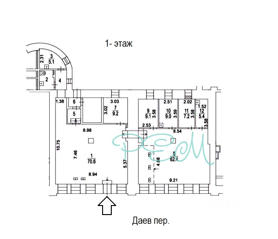 Сдаётся в аренду уникальное помещение свободного назначения на первом этаже исторического дома в Даевом переулке, д. 2.